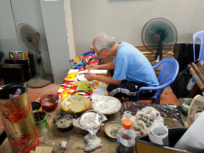 The best part for me was watching a man work with eggshells, creating a gorgeous picture of a lady in a boat. His hand movements distributing the crushed shells were incredibly skillful, and he seemed very calm even as dozens of tourists crowded around and past him.